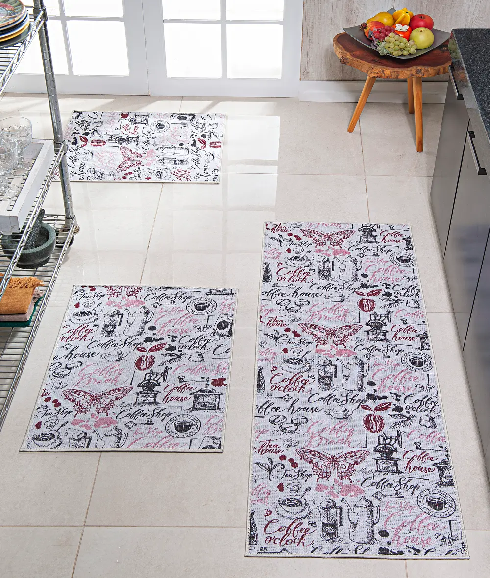 Tapete (kit) em tecido, com textura jacquard e antiderrapante. Disponível em diversas estampas e cores.