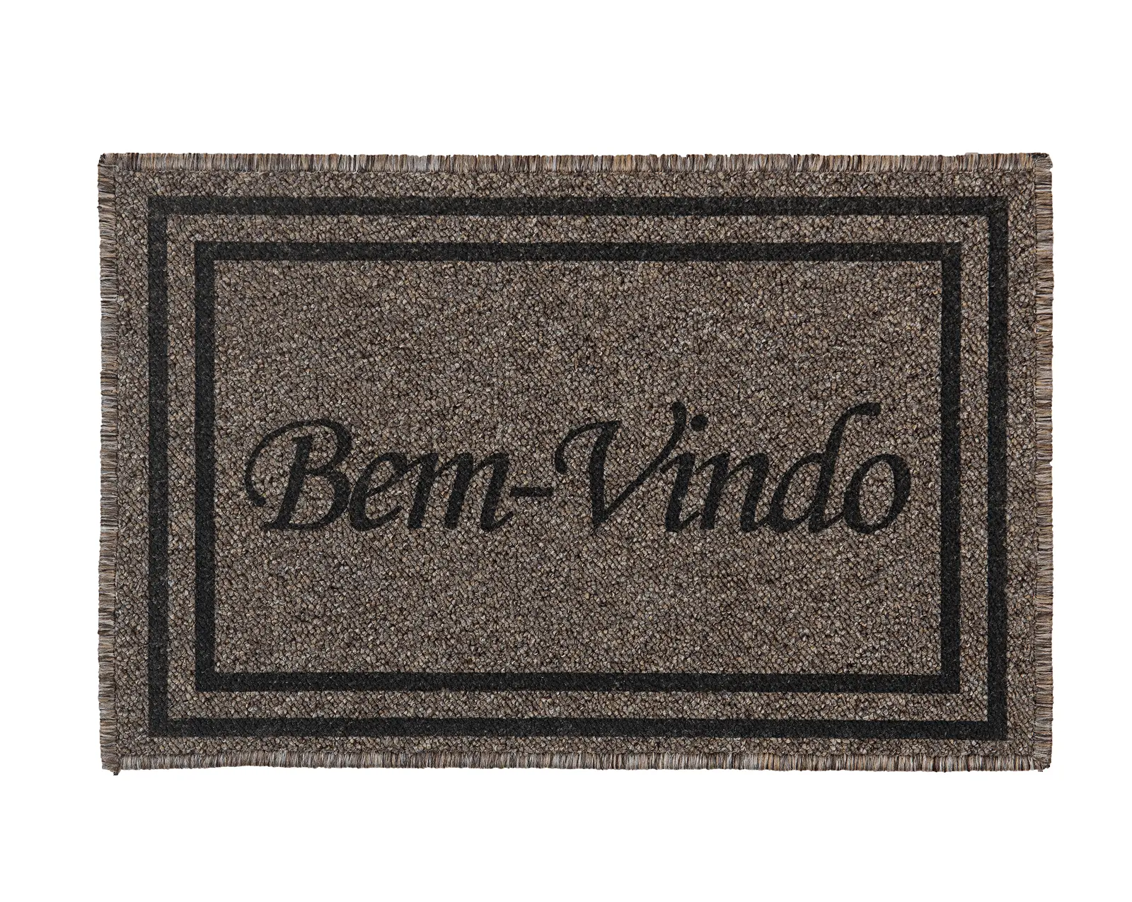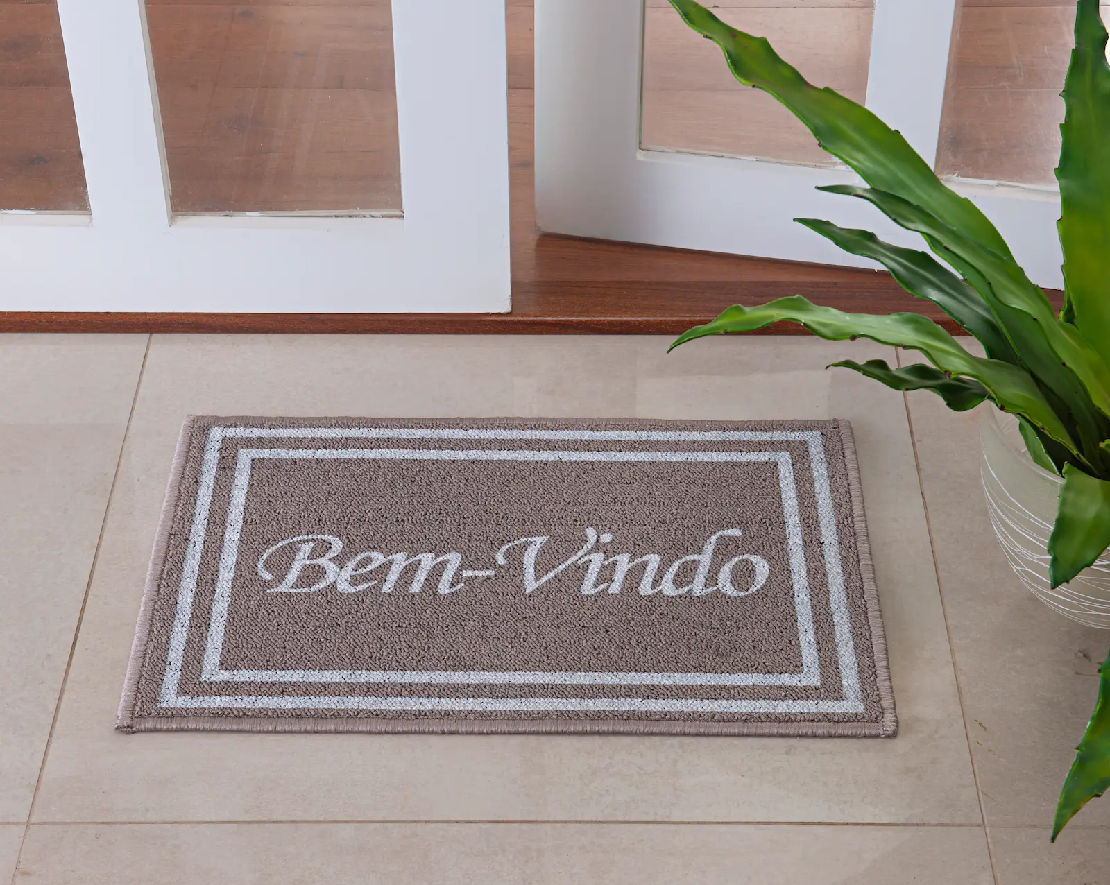 Tapete em polipropileno, com textura boucle e antiderrapante.
